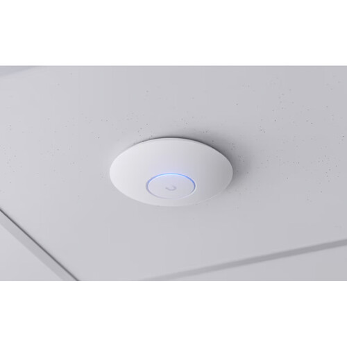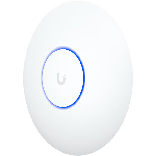 The UniFi U7 Lite Dual-Band Wireless Access Point from Ubiquiti Networks is a compact, ceiling-mounted Wi-Fi 7 (802.11be) AP with four spatial streams and a 2.5GbE RJ45 uplink port that also functions as a PoE port. It supports 2.4 and 5 GHz dual-band connectivity, with max data rates of up to 4.3 Gb/s when connected to the 5 GHz band and 688 Mb/s when connected to 2.4 GHz. In addition to Wi-Fi 7, it is backward compatible with Wi-Fi 6 (802.11ax), Wi-Fi 5 (802.11ac), and Wi-Fi 4 (802.11n). Also featured is a 5 dBi antenna gain, coverage for up to 1250 ft2, a max client count of 200+, four spatial streams, and a status LED. Included is a Lite Mount and mounting hardware.